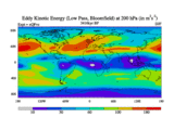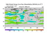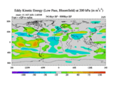 Low Pass Eddy Kinetic Energy at 200 hPa