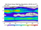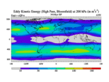 High Pass Eddy Kinetic Energy at 200 hPa