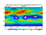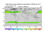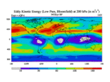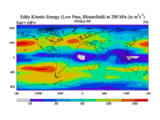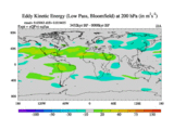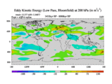 Low Pass Eddy Kinetic Energy at 200 hPa