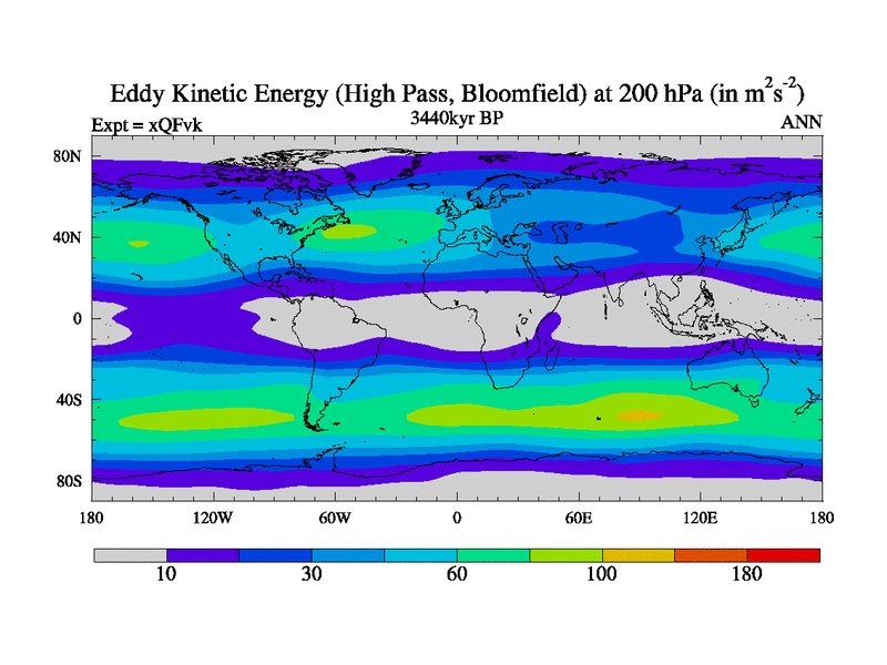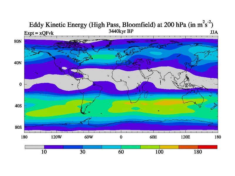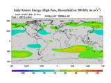 High Pass Eddy Kinetic Energy at 200 hPa