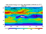 Low Pass Eddy Kinetic Energy at 200 hPa