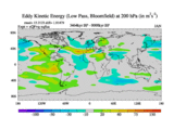 Low Pass Eddy Kinetic Energy at 200 hPa