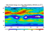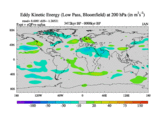 Low Pass Eddy Kinetic Energy at 200 hPa