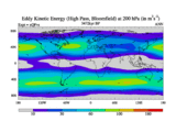 High Pass Eddy Kinetic Energy at 200 hPa