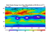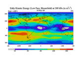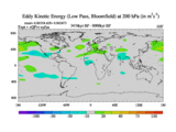Low Pass Eddy Kinetic Energy at 200 hPa