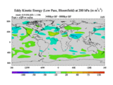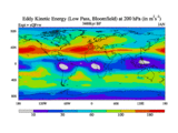 Low Pass Eddy Kinetic Energy at 200 hPa
