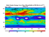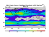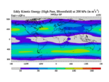 Low Pass Eddy Kinetic Energy at 200 hPa