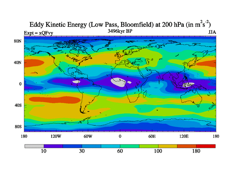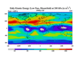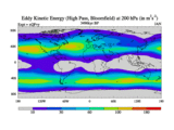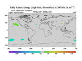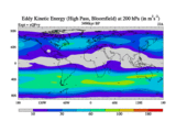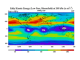 Low Pass Eddy Kinetic Energy at 200 hPa