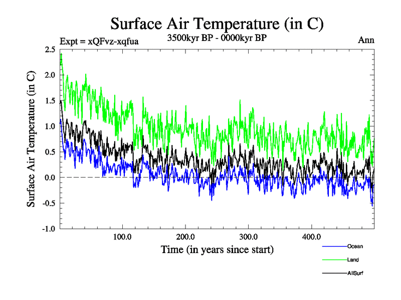 This is the 3500kyr simulation for a new set of BBC long runs. This is using the new convection/soil schemes, and has bug fixes for checkerboard patterns, and GW drag. Also includes eccentricity bugfix. This run includes orbit and icesheet but no GHGs variations.