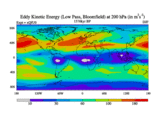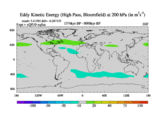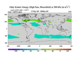 Low Pass Eddy Kinetic Energy at 200 hPa