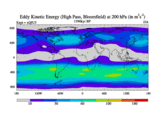 Low Pass Eddy Kinetic Energy at 200 hPa
