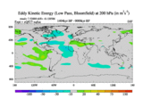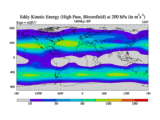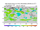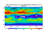 Low Pass Eddy Kinetic Energy at 200 hPa