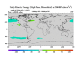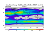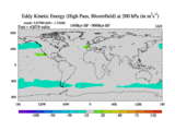 Low Pass Eddy Kinetic Energy at 200 hPa