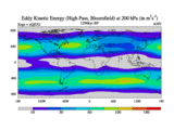 High Pass Eddy Kinetic Energy at 200 hPa