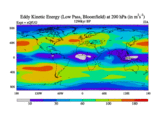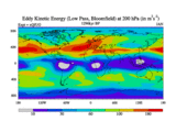Low Pass Eddy Kinetic Energy at 200 hPa