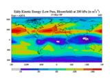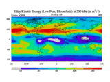 Low Pass Eddy Kinetic Energy at 200 hPa
