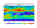 Low Pass Eddy Kinetic Energy at 200 hPa