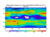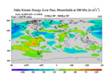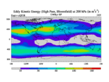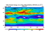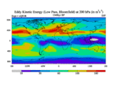 Low Pass Eddy Kinetic Energy at 200 hPa
