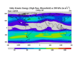 High Pass Eddy Kinetic Energy at 200 hPa