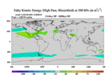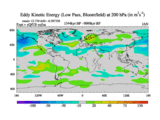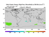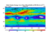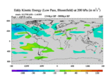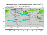 Low Pass Eddy Kinetic Energy at 200 hPa