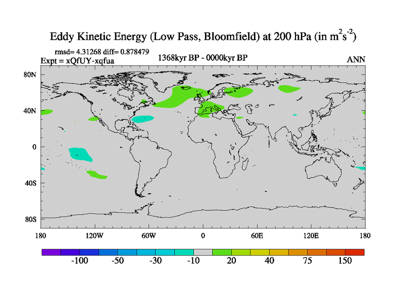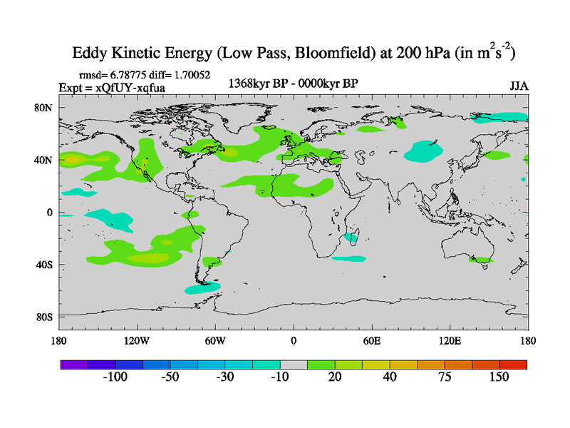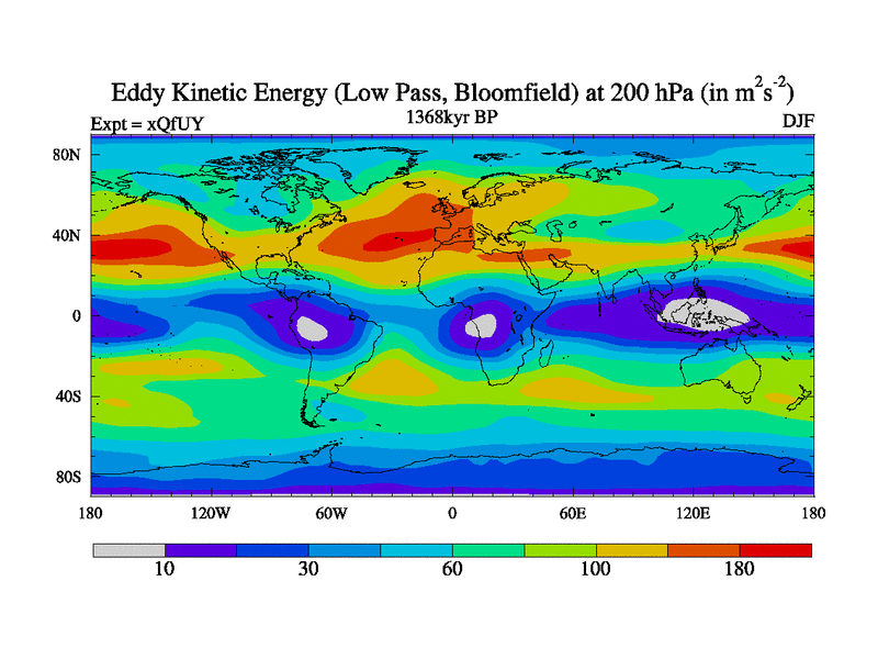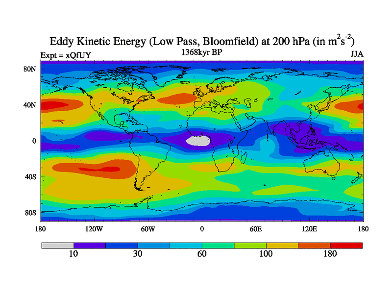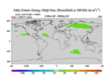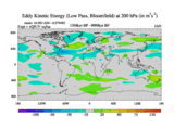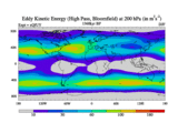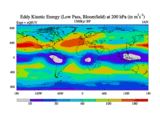 Low Pass Eddy Kinetic Energy at 200 hPa