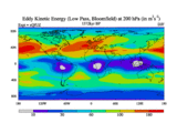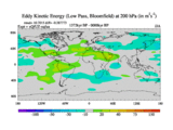 Low Pass Eddy Kinetic Energy at 200 hPa