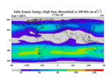High Pass Eddy Kinetic Energy at 200 hPa
