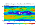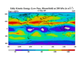 Low Pass Eddy Kinetic Energy at 200 hPa