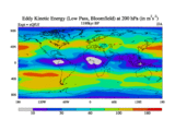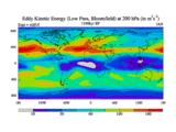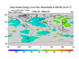 Low Pass Eddy Kinetic Energy at 200 hPa