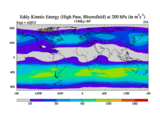 High Pass Eddy Kinetic Energy at 200 hPa