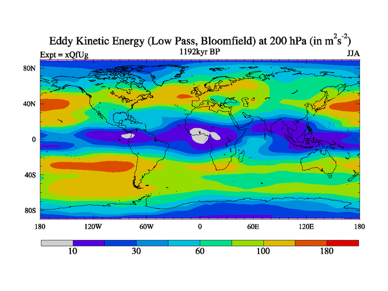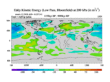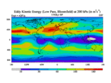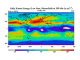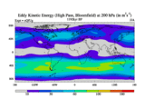 Low Pass Eddy Kinetic Energy at 200 hPa