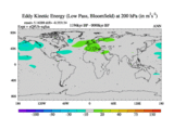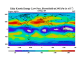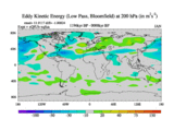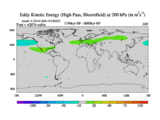 Low Pass Eddy Kinetic Energy at 200 hPa