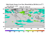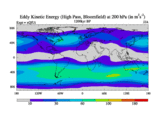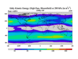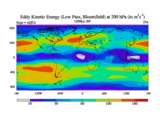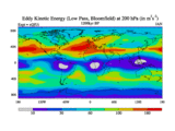 Low Pass Eddy Kinetic Energy at 200 hPa