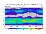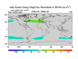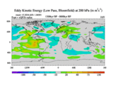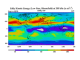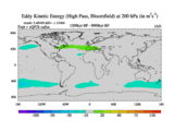 Low Pass Eddy Kinetic Energy at 200 hPa
