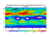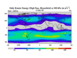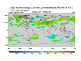 Low Pass Eddy Kinetic Energy at 200 hPa