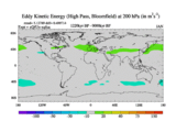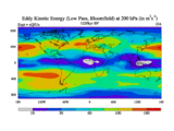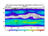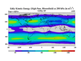 Low Pass Eddy Kinetic Energy at 200 hPa