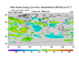 Low Pass Eddy Kinetic Energy at 200 hPa