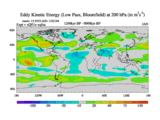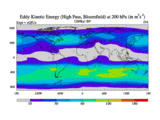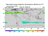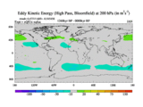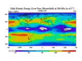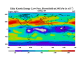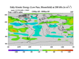 Low Pass Eddy Kinetic Energy at 200 hPa