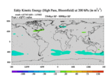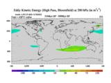 Low Pass Eddy Kinetic Energy at 200 hPa
