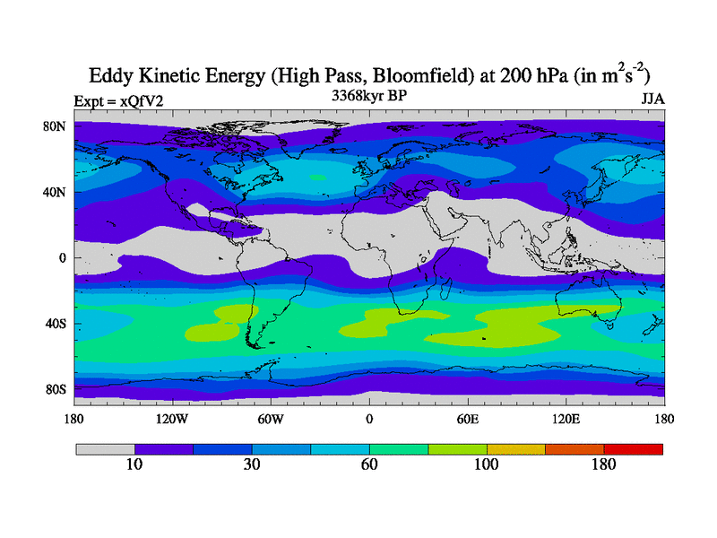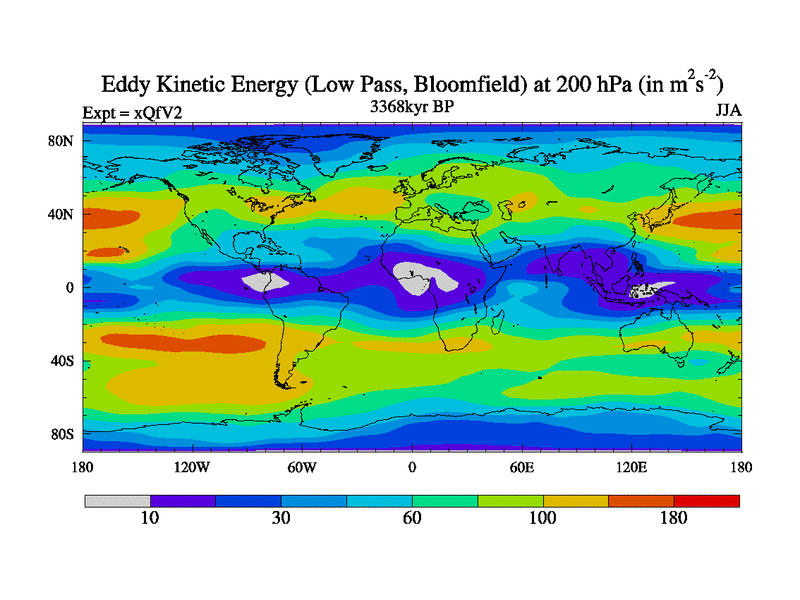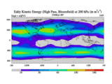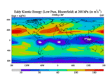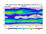 Low Pass Eddy Kinetic Energy at 200 hPa