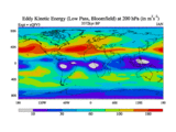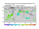 Low Pass Eddy Kinetic Energy at 200 hPa