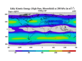 Low Pass Eddy Kinetic Energy at 200 hPa