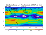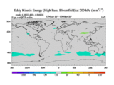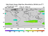 Low Pass Eddy Kinetic Energy at 200 hPa