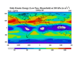 Low Pass Eddy Kinetic Energy at 200 hPa