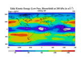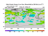 Low Pass Eddy Kinetic Energy at 200 hPa