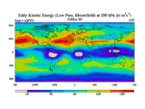 Low Pass Eddy Kinetic Energy at 200 hPa
