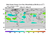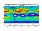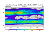 Low Pass Eddy Kinetic Energy at 200 hPa
