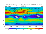 Low Pass Eddy Kinetic Energy at 200 hPa