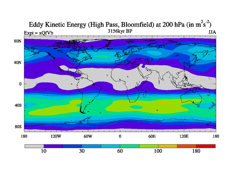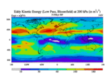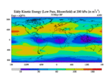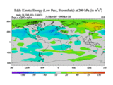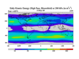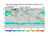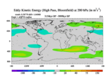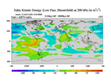 Low Pass Eddy Kinetic Energy at 200 hPa