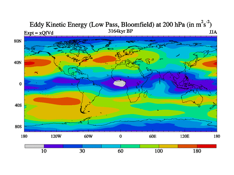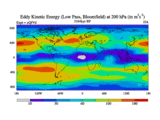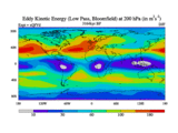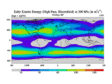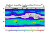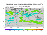 Low Pass Eddy Kinetic Energy at 200 hPa